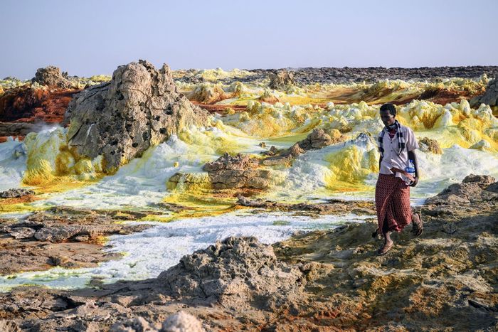 27. Một người đàn ông Ethiopia hiện đại đi ngang qua cảnh đẹp tự nhiên tuyệt vời ở Vùng trũng Danakil.
