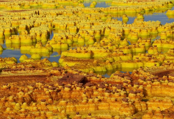 11. Vùng lân cận Hồ Dallol và các suối nước lưu huỳnh hình thành một bức tranh kỳ diệu của thiên nhiên.