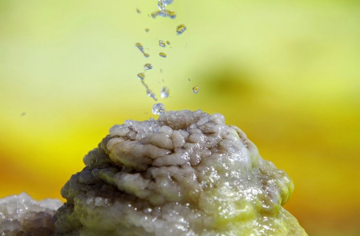10. Nước phun mạnh từ đỉnh của một cột nước hình nón trong một suối nước nóng ở Danakil.
