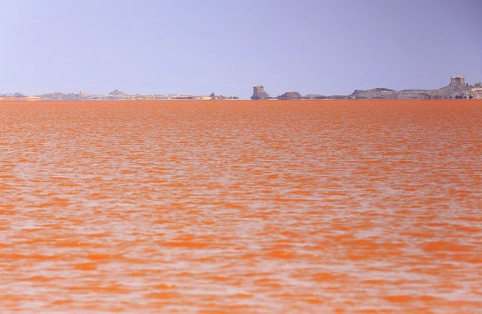 7. Sau một cơn bão mạnh tàn phá vùng cao nguyên xung quanh, nước từ hồ Karum (hay Assale) đổ vào khu vực nông cạn thường khô hạn, tạo nên một khung cảnh ấn tượng. Mặt nước hồ nổi bật với màu đỏ rực rỡ, tạo điểm nhấn nổi bật giữa sa mạc khô cằn của Danakil.