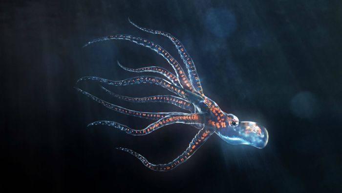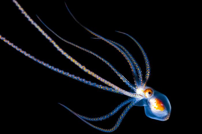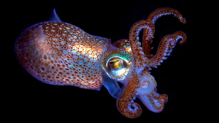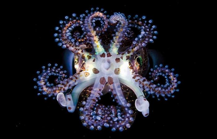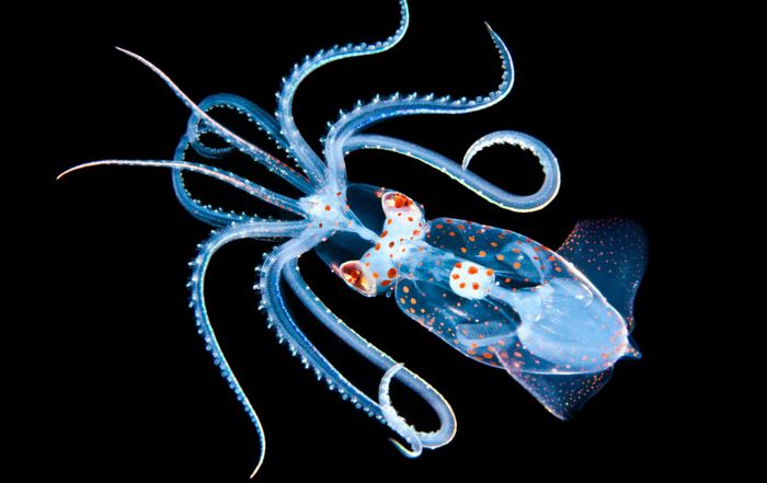 Vẻ đẹp tuyệt vời của cá mực phát sáng dưới đáy đại dương