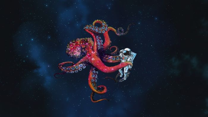 Chuyến phiêu lưu ngoài hành tinh qua bức tranh cá mực và phi hành gia