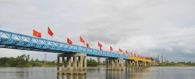 Hình ảnh Cầu Hiền Lương – Sông Bến Hải được sơn màu tạo điểm chia cắt (sưu tầm).