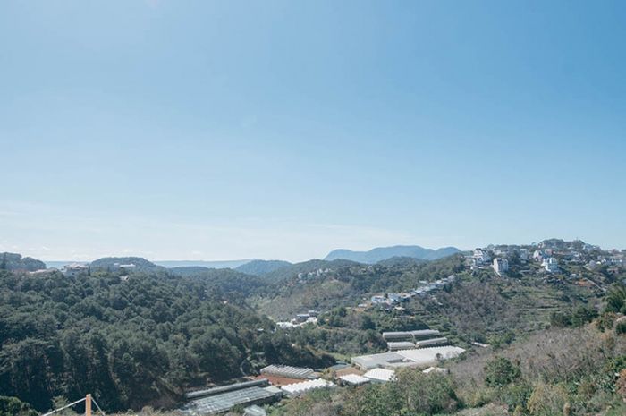 Nhìn từ thung lũng, bạn sẽ được ngắm cảnh lãng mạn của Đà Lạt vào buổi sáng và chiều tà. Ban đêm, những ánh đèn nhà kính từ xa rực rỡ, tô điểm cho khung cảnh lãng mạn này, mang lại cho bạn nhiều cảm xúc dễ chịu.