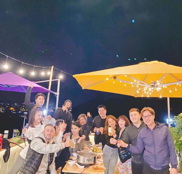 Cùng nhau nâng ly rượu và trò chuyện thân mật. Hẹn gặp lại Đà Lạt với ánh đèn lung linh từ xa vào buổi tối.