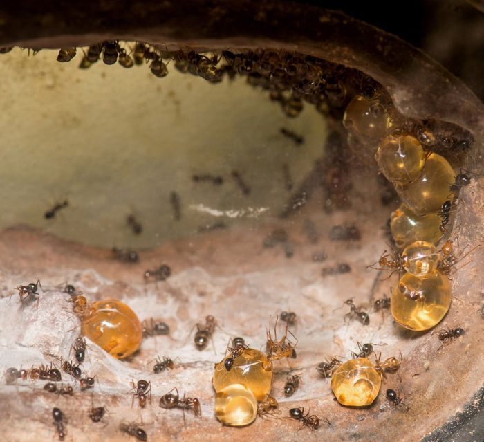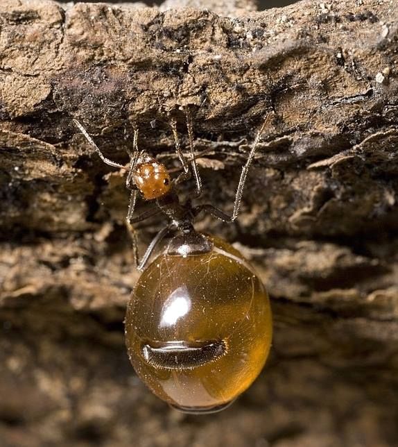 Trên thực tế, đây là những con kiến thợ giỏi nhất trong việc ăn mật hoa thu được từ nhiều loại thực vật khác nhau. Chúng sẽ ăn liên tục cho đến khi bụng của chúng nở ra đến mức trông chúng như sắp vỡ và làm nổ chất lỏng màu hổ phách bên trong. Được biết đến với cái tên 'kiến mật', chất lỏng ngọt ngào màu hổ phách trong bụng của chúng sẽ được tiết ra bất cứ khi nào các thành viên trong đàn của chúng cần thức ăn.
