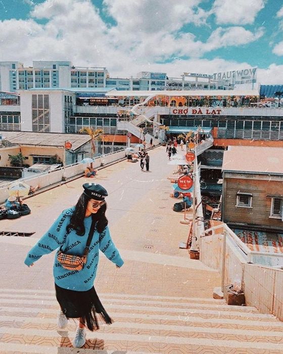 Just a few hundred meters from Xuan Huong Lake, Dalat Market is not only the main commercial hub of the mountain town but also boasts numerous 'Instagrammable' spots attracting the younger crowd. Besides the underground market – formerly known as Dalat's night market named by locals – the bridge linking Dalat Market and Hoa Binh area is likened to streets in Hong Kong, becoming a beloved photography spot for quite some time now.