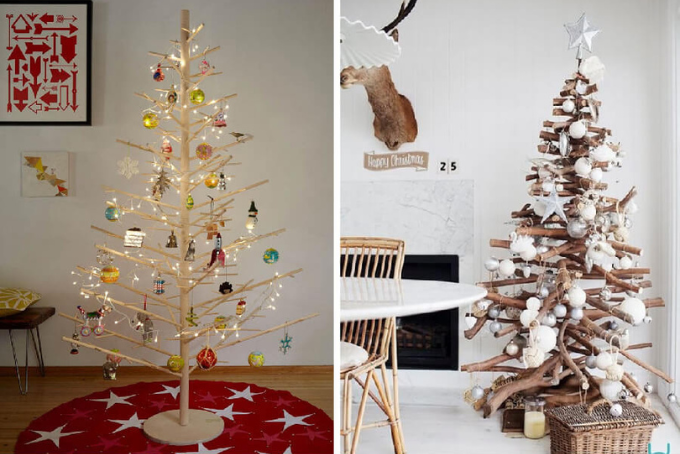 You can use dry branches, cover them with white paint, add snowflakes, and sparkling lights to adorn the coffee shop with a nostalgic and cozy Christmas atmosphere.