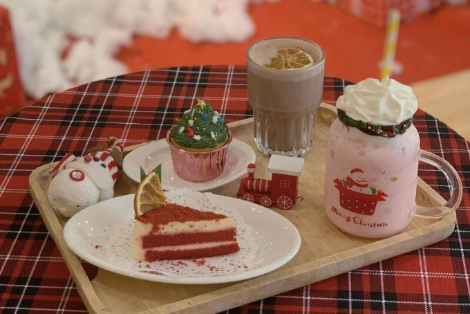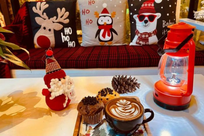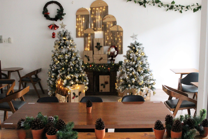 Thanks to this Christmas-themed cafe decor area for check-ins, beautiful photos will be shared on social media platforms, attracting other customers to notice the colorful Christmas-decorated space and visit your cafe. This is not only a cost-effective but also an effective form of marketing.