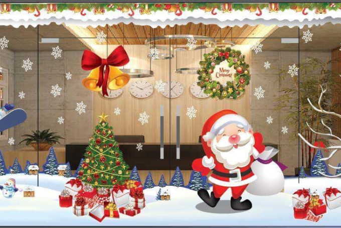 If you have limited space to adorn your coffee shop with actual decorations for Christmas, decorative decals are your savior.