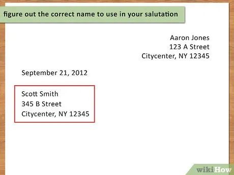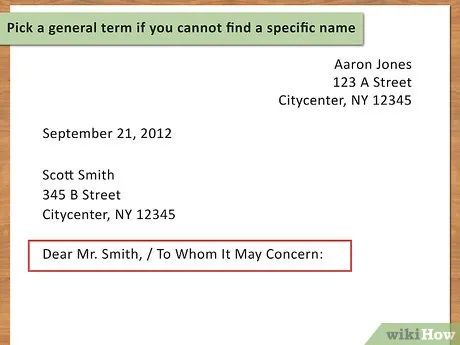 Xác định tên gọi chính xác mà bạn sẽ sử dụng cho lời chào. Tốt nhất là bạn nên thêm danh xưng cụ thể trong lời chào, vì vậy, bạn cần phải tìm hiểu về tên của người đứng đầu bộ phận tuyển sinh. Cá nhân hóa lá thư sẽ khiến nó trông chuyên nghiệp hơn.
