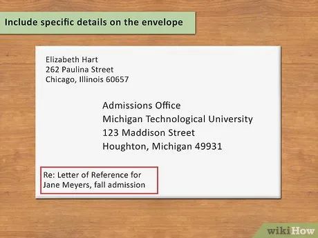 Include additional details on the envelope. To ensure your letter is delivered correctly, it’s recommended to include details about the purpose of the letter at the lower-left corner of the envelope. Besides admissions applications, the admissions office may receive various types of letters, including scholarship-related ones, so there are several departments within.