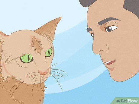 Notice your cat's eyes. A cat’s eyes react quickly to changes in light but also reflect her mood. When observing her eyes, consider the lighting and other body language cues. Here are some guidelines: