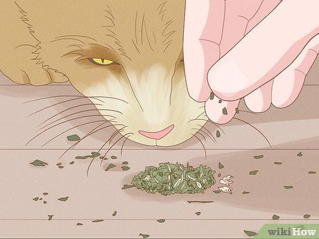 Offer your cat some dried catnip. If your cat is overly excited, you can calm her down by sprinkling a bit of catnip on the floor. If you’d rather avoid the mess (some cats eat catnip, while others just play with it), consider giving her a catnip toy instead.
