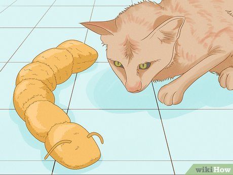 - Toss a crinkled piece of paper or a small ball toward your cat. You can also use a toy mouse, but avoid throwing it directly at her; aim for a spot just in front of her paws.