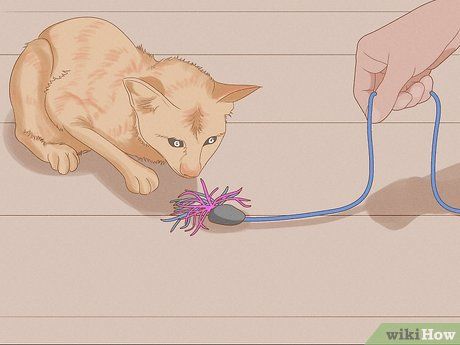 - Wave a string in front of her. Gently wiggle it back and forth, moving it closer and farther away. You can even sweep it across her paws.