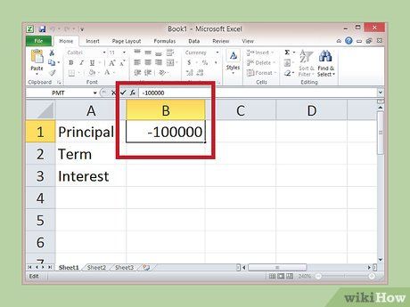 | 2 | Khoản vay âm (-100000) | Tổng số lần trả nợ theo tháng. (360) | Lãi suất, ghi bằng số thập phân. (0,05) | Lãi suất/tháng (chia lãi suất/năm cho 12) |