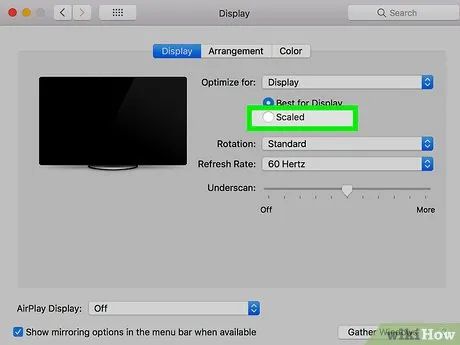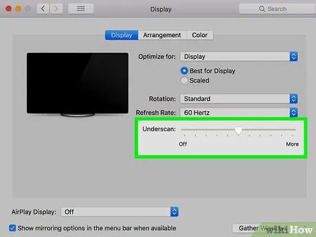 Change the display scaling. Drag the "Underscan" slider at the bottom of the page to the left to shrink the Mac screen on the external display or to the right to enlarge the screen.