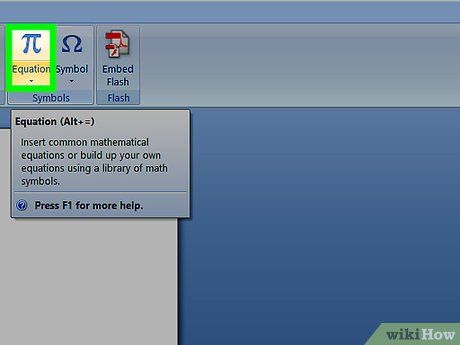 Click on Equation. This option, marked by a pi symbol, is located in the upper-right corner of the toolbar.