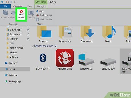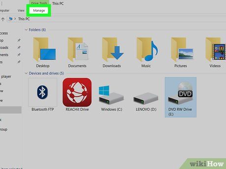 Click on Manage. This is the tab located at the top-left corner of the File Explorer window. A toolbar will appear below the Manage tab.