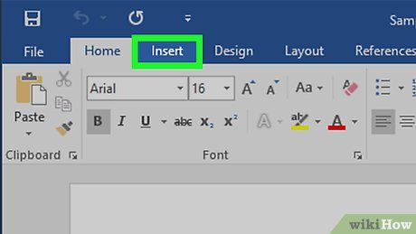 Click on the Insert tab at the top of the window. The Insert toolbar will appear at the top of the window.