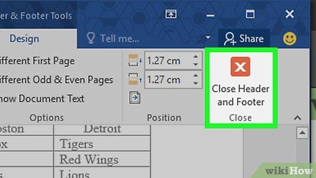 Click on Close Header and Footer. The red "X" is located at the top-right corner of the toolbar. Once clicked, the "Header" text field will close.