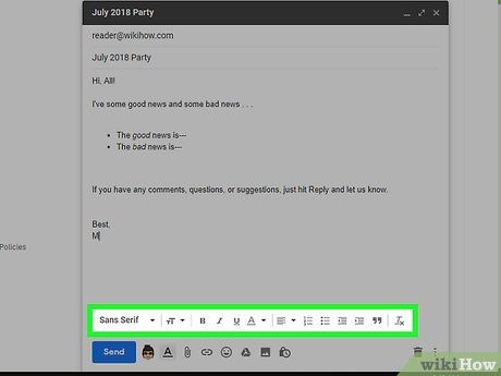 Format the email text if necessary. If you want to apply formatting to the text (e.g., bold, italic, or bullet points), highlight the text you want to format and click on one of the formatting options at the bottom of the email window.