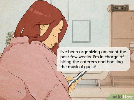 - If he asks you about your work, feel free to give specific details. You can say, 'I’ve been organizing an event for the past few weeks. I’m in charge of hiring the staff and booking the guest singer!'