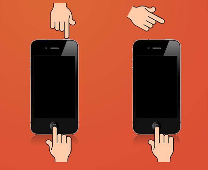 Bạn nhấn và giữ đồng thời 2 nút là nút Nguồn và nút Home trong vài giây, sau đó thả tay khỏi nút Nguồn, nhưng vẫn giữ nút Home để đưa iPhone vào chế độ DFU.