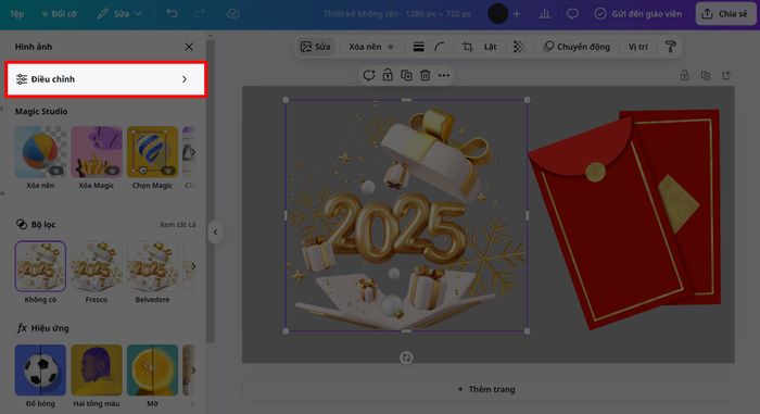Bước 3: Tiếp tục nhấn vào mục Điều chỉnh để tiến hành chỉnh sửa.