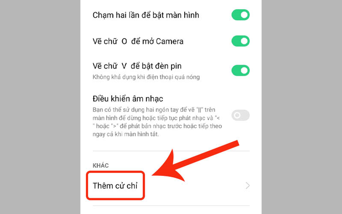 - Bước 4: Chạm Thêm cử chỉ để thêm cử chỉ màn hình tắt.