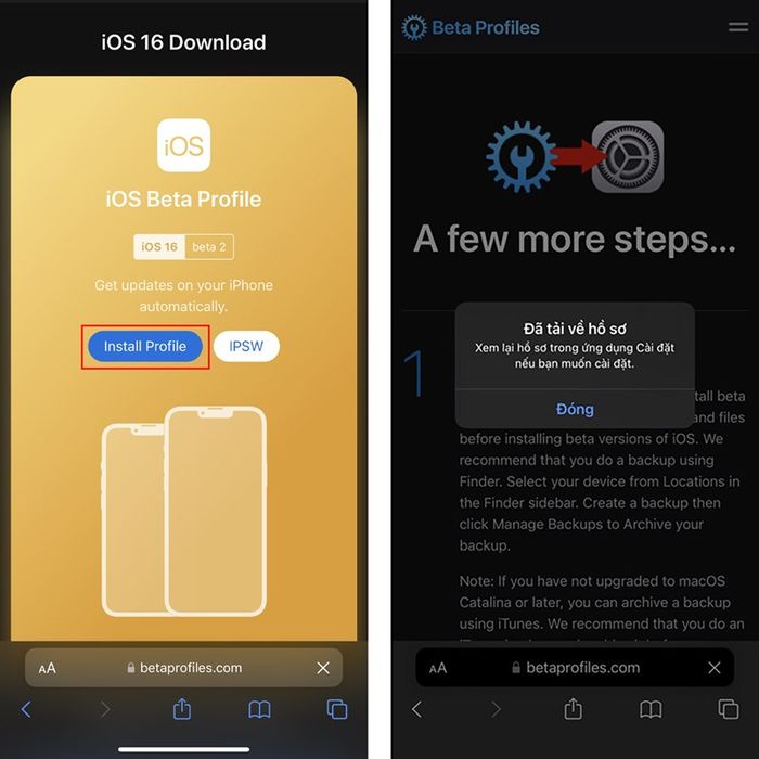 Bước 1. Truy cập vào trang Beta Profile ở link dưới đây, sau đó chọn Cài đặt Profile iOS 16 Beta 2.