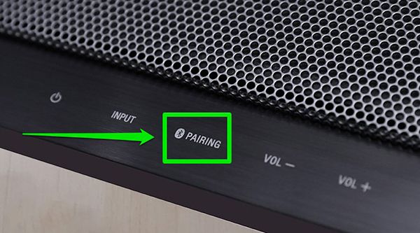 Bước 1: Mở hệ thống loa và nhấn nút Pairing (có biểu tượng Bluetooth) để loa sẵn sàng kết nối.