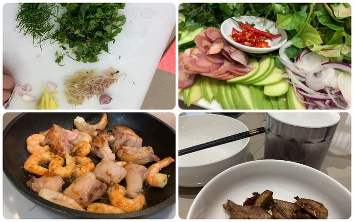 Chuẩn bị các nguyên liệu còn lạiLột vỏ tôm, loại bỏ đuôi và đầu, sau đó rửa sạch và để ráo. Gan heo được cắt nhỏ, ngâm trong nước muối 1-2 tiếng, sau đó rửa sạch. Để chiên vàng gan heo và thịt tôm trong ít dầu ăn, sau đó vớt ra để ráo. Tiếp theo, đưa gan heo và thịt tôm vào máy xay nhuyễn.