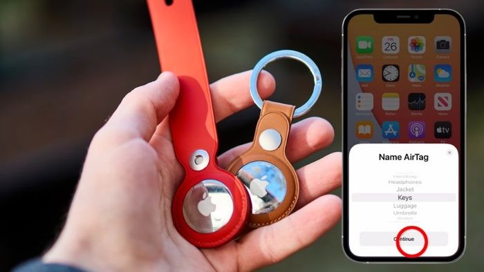 Bước 3: Chọn đối tượng (Item) bạn muốn gắn AirTag > Nhấn Tiếp tục để tiếp tục.