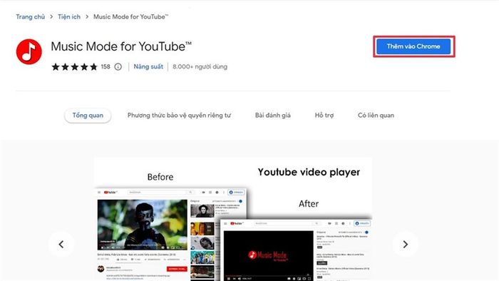 Bước 1: Cài đặt Music Mode for YouTube cho trình duyệt của bạn tại đây.