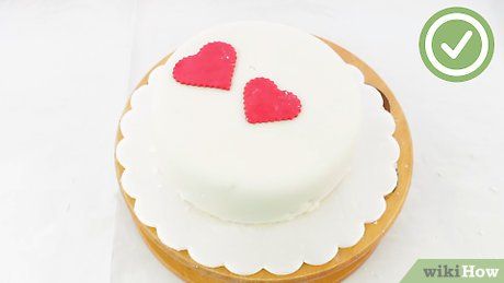 Hoàn tất việc trang trí bánh. Bạn có thể không trang trí thêm hoặc dùng kem bơ để viết chữ, tạo đường xoắn hoặc bắt bông. Ngoài ra, bạn có thể sử dụng thảm chuyên dụng với hình nổi để tạo họa tiết cho fondant.
