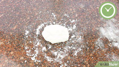 Làm sạch một mặt phẳng rộng và phủ đường bột lên. Mặt phẳng phải mịn vì bất kỳ dấu vết lồi lõm nào cũng để lại dấu trên fondant. Phủ một ít đường bột lên mặt phẳng để fondant không bị dính.
