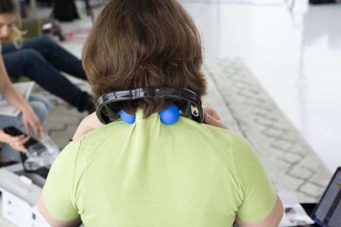 Dùng máy massage cầm tay cho vùng cổ để giảm căng thẳng (Nguồn: Internet)Cách sử dụng máy massage cầm tay cho bắp chân