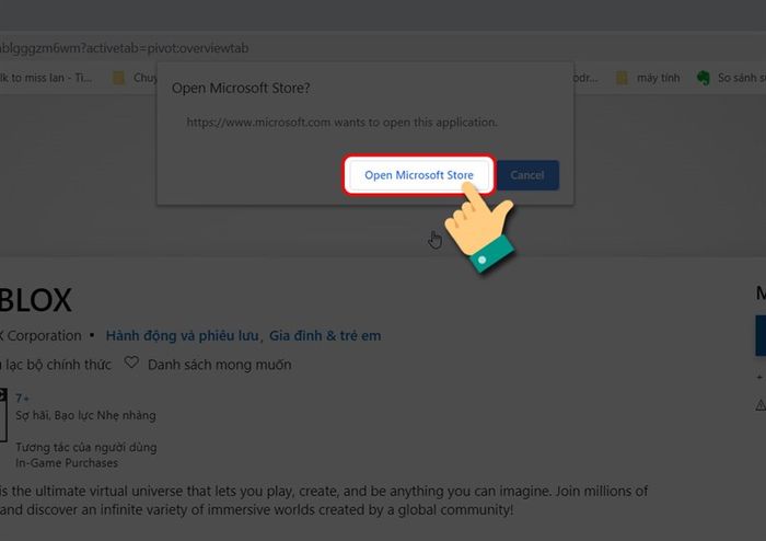 Bước 3: Giao diện mới sẽ yêu cầu chuyển sang cửa hàng Microsoft, bạn chọn Mở Microsoft Store để tiếp tục.