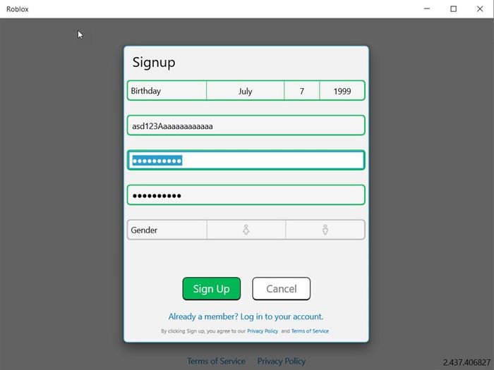 Bước 6: Trong giao diện mới, bạn có thể đăng nhập hoặc tạo tài khoản ROBLOX mới. Nhấn vào Login để đăng nhập, Signup để tạo tài khoản.