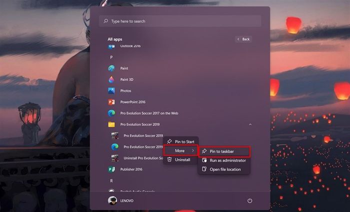 Ngoài ra, bạn còn có thể tìm tất cả ứng dụng và tìm đến ứng dụng bạn muốn thêm vào thanh Taskbar.