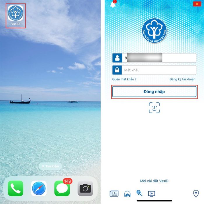 Bước 1: Truy cập vào ứng dụng VssID, sau đó đăng nhập vào tài khoản BHXH/BHYT của bạn.