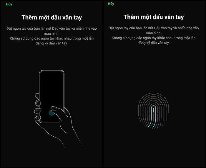 Đặt ngón tay lên màn hình để lưu lại dấu vân tay