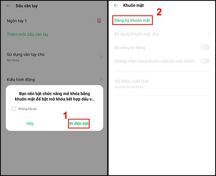 Nhấn Kích hoạt để bật tính năng nhận diện khuôn mặt > Đăng ký khuôn mặt.
