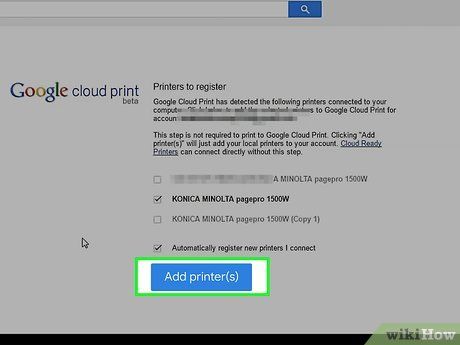 - Nếu máy in đã kết nối với Google Cloud Print, bạn có thể bỏ qua bước này.