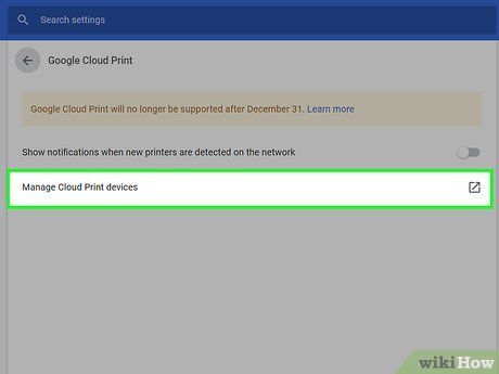 Nhấp vào nút 'Quản lý' để mở trình quản lý Google Cloud Print. Danh sách các thiết bị đang kết nối sẽ hiển thị.