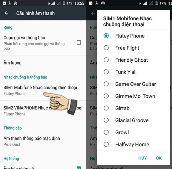 Bước 4: Đặt nhạc chuông cho SIM 1.