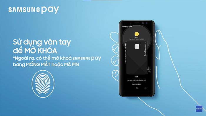 + Bảo vệ bằng sinh trắc học: Mỗi khi sử dụng Samsung Pay để thanh toán, người dùng cần xác thực bằng mống mắt, vân tay hoặc nhập mã số PIN để thực hiện giao dịch. Điều này giúp ngăn chặn kẻ gian sử dụng thẻ trên Samsung Pay khi bạn mất thẻ.