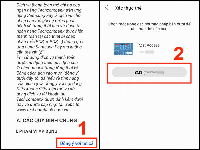 Bước 5: Chọn Đồng ý với tất cả điều khoản dịch vụ, sau đó chọn phương thức xác thực SMS.